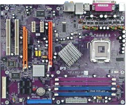 ECS 915P-A (V1.2A) Socket 775 AGP, PCI Express for Intel Pentium 4 processor Special Features: FSB 800MHzSupports the latest 800MHz front side bus Intel Pentium 4 CPU 8-Channel Audio Enable premium home theater experience through the PC,with support for all major audio format. AGP express Savior for backward compatible purpose when users still have the AGP card. ECS patent design (AGP Guardian) ensures 100 % protection to prevent any AGP 8X/ 4X cards burnt out. The higher performance VGA engine card is, the less performance lose on AGP Exp Dual DDR400/ DDR2 533 Supports latest Dual Channel DDR2 533/400 DIMM and Mainstream Dual Channel DDR400/333 DIMM.Users can use either DDR2 or DDR memory modules. USB 2.0 Delivers transfer speeds up to 480Mb/s for easy connectivity and ultra-fast data transfers PCI Express Delivers up to a 4x increase in graphics and 2x I/O bandwidth for smooth multimedia performance. Gigabit LAN Gigabit LAN supporting a high transfer rate up to 1 Gb/s. Color Map Color-coded pin headers and slots make it easy to match plug Serial ATA Supports Serial ATA HDD running at 150MB/s Specification: CPULGA775 socket for latest Intel Pentium 4 / Celeron processor FSB 800/533 MHz Support Hyper-Threading Technology CHIPSET Intel® 915P & ICH6 North Bridge: Intel® 915P South Bridge: Intel® ICH6 MEMORY Dual-channel DDRI & DDR2 memory architecture 2 x 184-pin DDR DIMM or 2 x 240-pin DDR2 DIMM socket support up to 2 GB Support DDR400/333 DDR SDRAM or DDR2 533/400 DDR2 SDRAM EXPANSION SLOT 1 x PCI Express x16 slot 1 x AGP Express slot 2 x PCI Express x1 slots 2 x PCI slots STORAGE Supported by Intel ICH6 -- 2 x Ultra DMA100/66 devices -- 4 x Serial ATA devices AUDIO C-Media CMI9880 8-channel audio CODEC Compliant with Intel Azalia specification LAN Realtek RTL8110S Gigabit Fast Ethernet Controller ( RTL8100C 10/100 Mbps optional ) REAR PANEL I/O 1 x PS/2 keyboard & PS/2 mouse connectors 4 x USB ports 1 x RJ45 LAN connector 1 x Serial port (COM1) 1 x Audio port (Line-in,4x Line-out, Mic_in) 1 x Parallel port (LPT1) INTERNAL I/O CONNECTORS & HEADERS 1 x 24-pin ATX Power Supply connector 1 x 4-pin ATX 12V connector 1 x SPDIF out header 1 x FDD connector supports two 360K~2.88MB FDDs 1 x IDE connectors 4 x Serial ATA connectors 1 x Speaker header 2 x USB 2.0 headers support additional 6 USB ports 1 x Front panel switch/LED header 1 x Front panel audio header CD in header CPUFAN/NB_FAN/CHSFAN/AUXFAN connectors SYSTEM BIOS AMI BIOS with 4Mb Flash ROM Supports Plug and Play 1.0A, APM 1.2, Multi Boot, DMI Supports ACPI revision 1.0 specification FORM FACTOR ATX Size 305mm*244mm For CPU Support click HERE Also included: |
