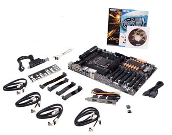 Including Motherboard, Drivers and Utilities Disk, User Guide, Backplate, SATA Cables, USB 2.0 Bracket, USB 3.0 Bracket, eSATA Power Cable, eSATA Bracket, M-Connector, USB3 to USB2 Connector, SATA Power Cable, CrossFire Cable, SLI Cable, MSI MultiConnect Panel. |
