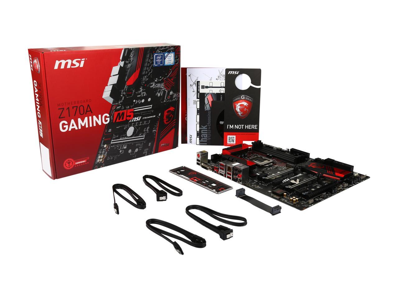 MSI Z170A Gaming M5 MS-7977 LGA 1151 DDR4 USB 3.1 ATX Motherboard Original Package Including MSI Z170A Gaming M5, Drivers and Software CD, I/O Shield, SATA Cables, SLI Bridge and connectors. |